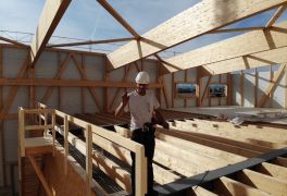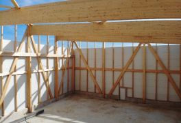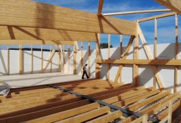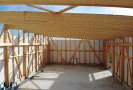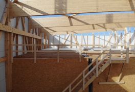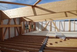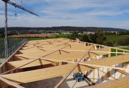 Holzkonstruktion inkl. Fassade und Dach, ca. 200m3 nachwachsender Rohstoff verbaut.